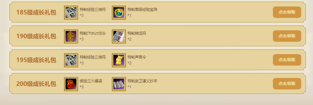 版本更新后,将开放角色200级等级上限,在活动期间,玩家从1级升至200级,每达到一定等级,就能领取对应的成长礼包,获取【特制经验三倍符】、【特制演义抄本】等道具,加速冲击之旅!