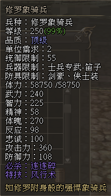 修罗象骑兵属性一览: