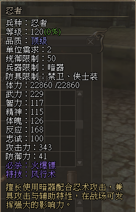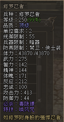 修罗忍者属性一览: