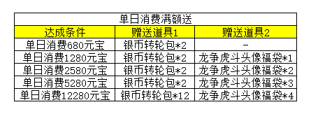 Tips:单日消费满额送活动实际增送道具为 赠送道具1+赠送道具2