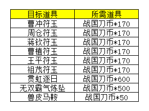 Tips:本期为糜竺商店第二期兑换,战国刀币仅能够在第一至第三期内作为货币,第四期糜竺商店将会更换货币