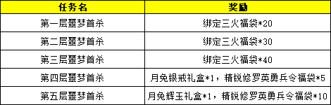 (统计时间方式为统计第一个提交对应层噩梦任务玩家的队伍;若出现两名不同队伍同时完成首杀,将取击杀boss时间更短的队伍发放首杀奖励;若击杀时间完全相同,将同时发放奖励。奖励将于7个工作日内发放。)
