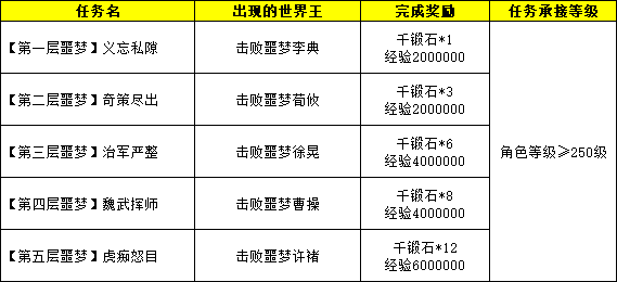 5)全新噩梦副本为5层,共5位噩梦王