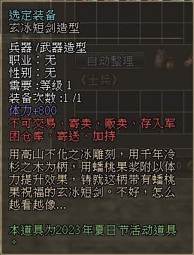 活动期间,每日前往游戏内皇甫嵩处,完成“夏日炎炎”任务将获得一枚消暑冰球,可用于演艺大厅活动兑换官处兑换特制神来天训之书、特制真龙之魂、活动限定称号“炎炎夏日”与武器造型“玄冰短剑”等物品。