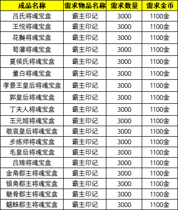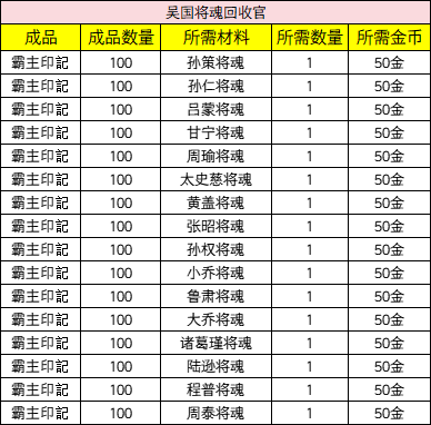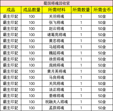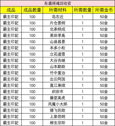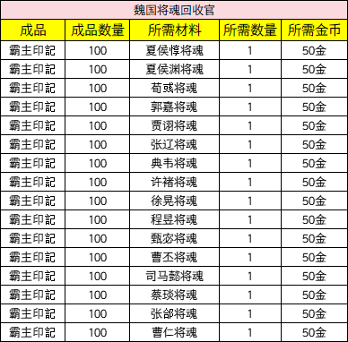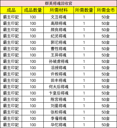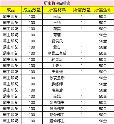 ·回收列表如下(以下所列将魂1至10级均可回收)