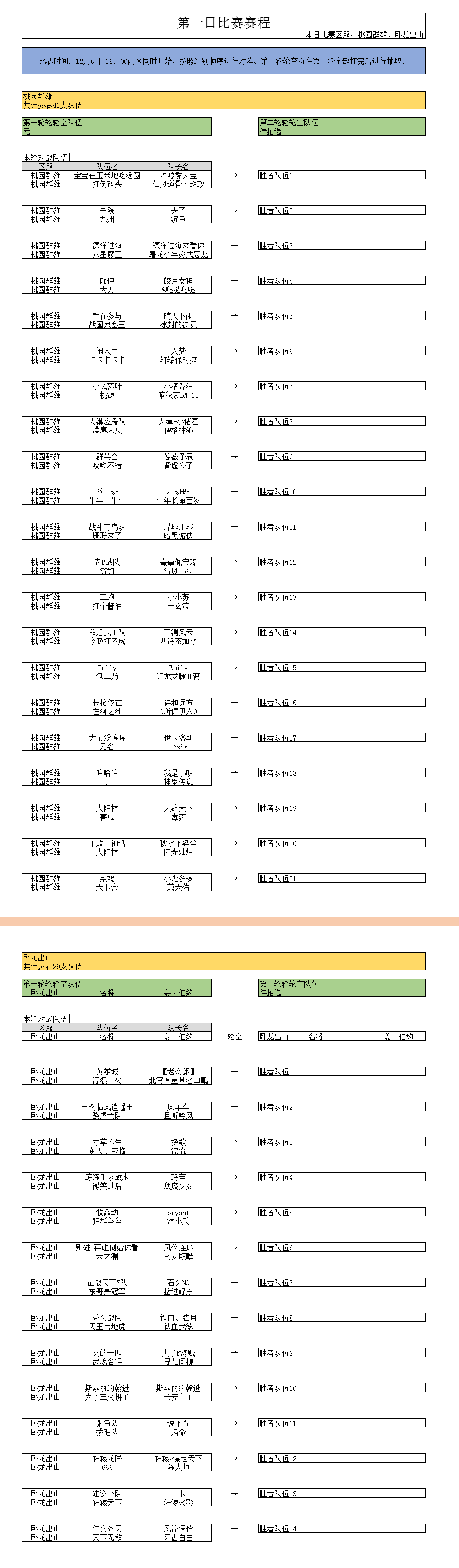 12月6日比赛区服为:桃园群雄、卧龙出山。比赛将于12月6日晚19:00开始,两个区同时进行。