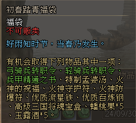·初春踏青包裹,及包裹内道具详情如下: