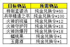 (纯金兑换令为常驻活动道具,可兑换物品将随活动更新进行调整)