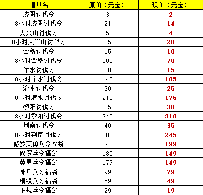 ·道具售价调整