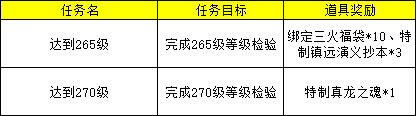 6.演义大厅中的『等级奖励官』处,新增任务《达到265级》《达到270级》