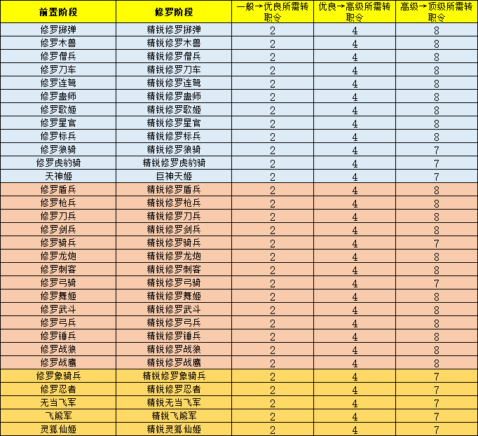 ·前置阶段的士兵,需要达到270级才可以转职为相应的修罗士兵
