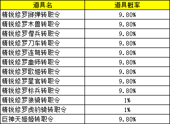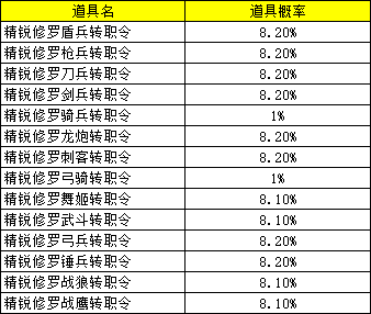 精锐修罗兵令福袋概率公示: