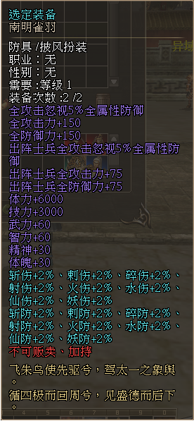 活动期间,前往新服活动页可购买网页代币“封侯令”,1元可购买10个封侯令,消耗封侯令兑换商城道具,其中包含:转轮票、神工钳子、讨伐令、兵令福袋等新服实用道具。购买的封侯令将统计至封侯榜,榜首可获得全服限定稀有披风扮装“南明雀羽”,该披风不可加持,将随版本更新免费进阶。