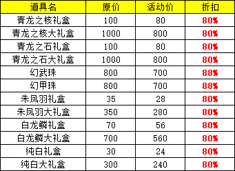 1.1 夏日节限时折扣开启,幻武幻甲系列道具折扣销售