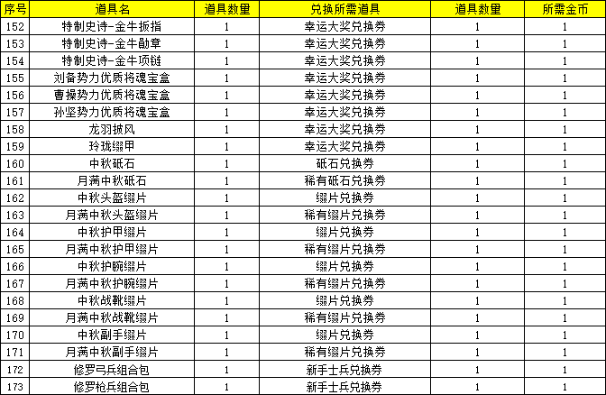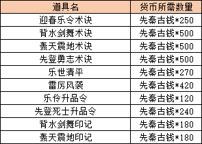 Tips:本期为糜竺商店第五期兑换,先秦古钱仅能够在第四至第六期内作为货币,第七期糜竺商店将会更换货币。