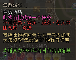 冬日节活动时间为11月16日维护后至12月14日维护前