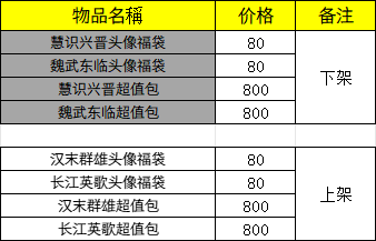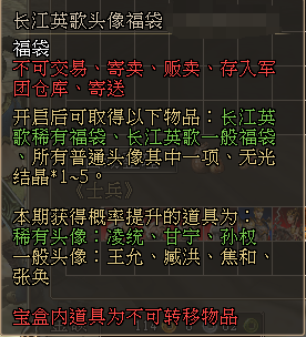 ·「汉末群雄头像福袋」、「长江英歌头像福袋」及其相关道具详情如下