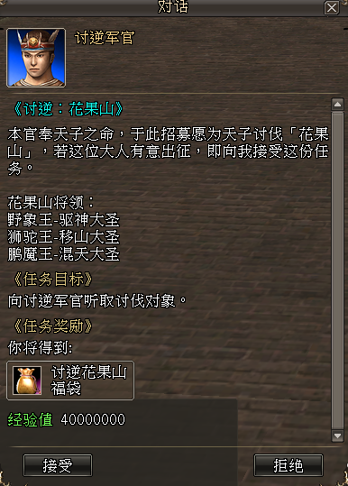 ·增加全新的每日讨逆任务《讨逆:花果山》,该任务承接等级为291级至300级