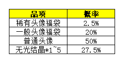 ·跃马扬鞭一般头像福袋、横扫千军一般头像福袋、跃马扬鞭稀有头像福袋、横扫千军稀有头像福袋,概率公示如下: