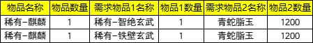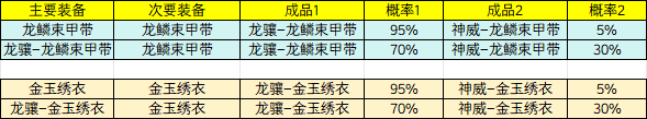 稀有道具包含:龙鳞束甲带*1,金玉绣衣*1