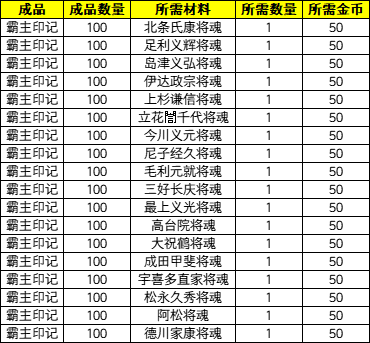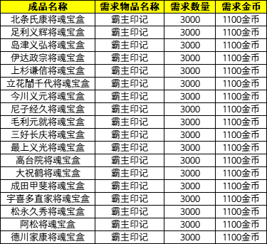 4、演义大厅中「将魂兑换官」处新增以下兑换道具
