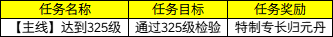 8、演义大厅中的「等级奖励官」处,新增任务《达到325级》