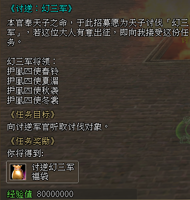 7.2增加全新的每日讨逆任务《讨逆:幻三军》,该任务承接等级为321级至325级