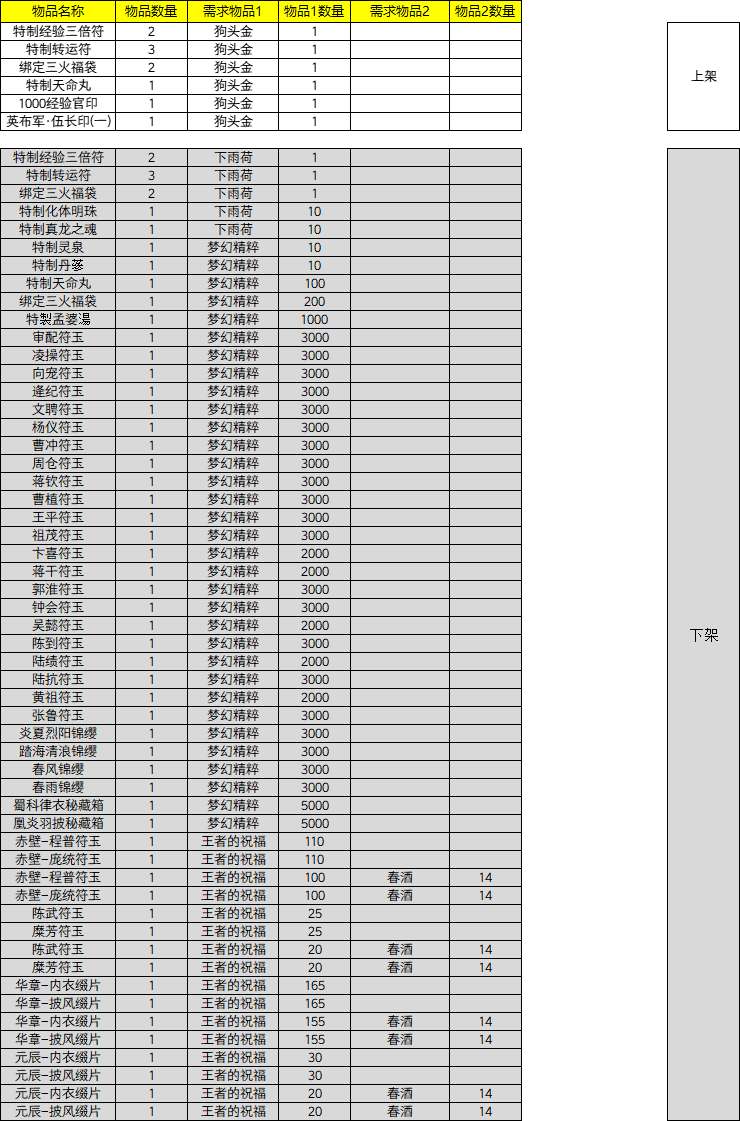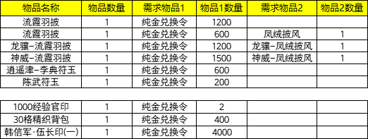 5、演义大厅「纯金商人」处兑换物品调整