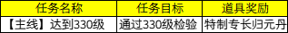 6、演义大厅中的「等级奖励官」处,新增任务《达到330级》