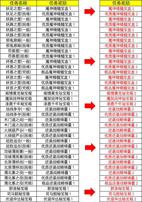 1、任务奖励调整