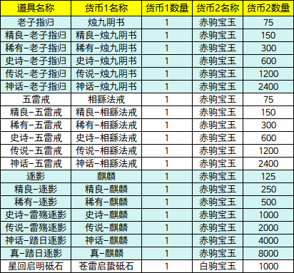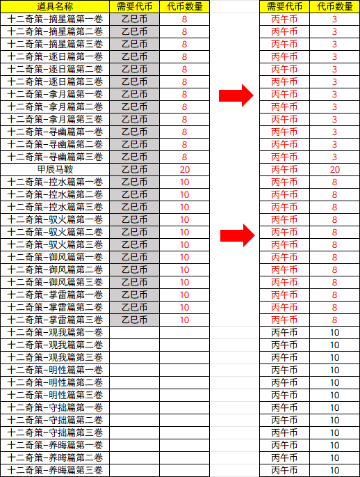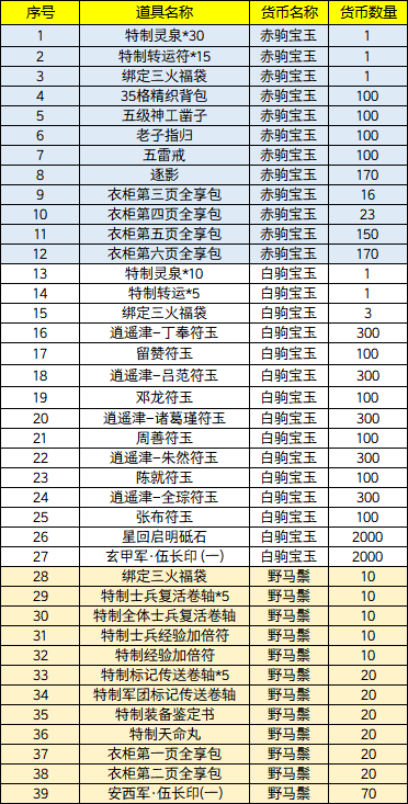 ·本次更新后NPC「随军掌柜」兑换物品调整