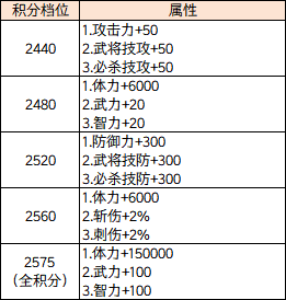 2)被动技能:头像全收集效果增强为【体力+80000、全防御力+4000、出阵士兵全攻击力+500、出阵士兵全属伤+2%、出阵士兵全属防+30%、出阵士兵抵伤率+20%、攻击时有50%几率获得增益状态:百将之首】