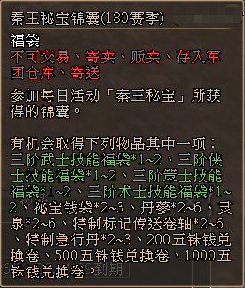 · 秦王秘宝活动中,最终奖励替换为“秦王秘宝锦囊(180赛季)”
