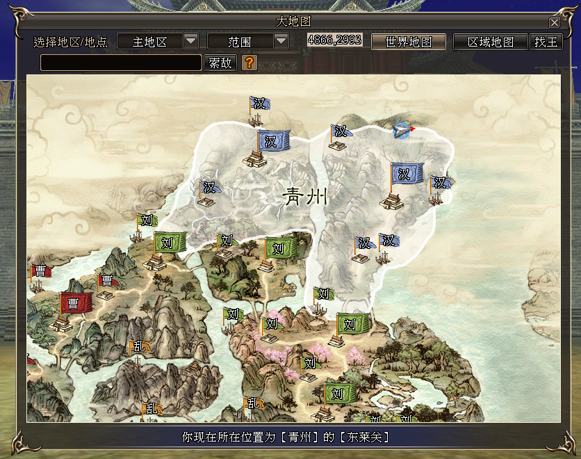 5、开放全新地图区域“青州”,主公们可直接前往探索,位置如下(可能会重置历史事件)
