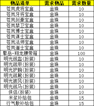 14、演义大厅的「赤珠兑换官」更改为「金珠兑换官」,兑换列表如下: