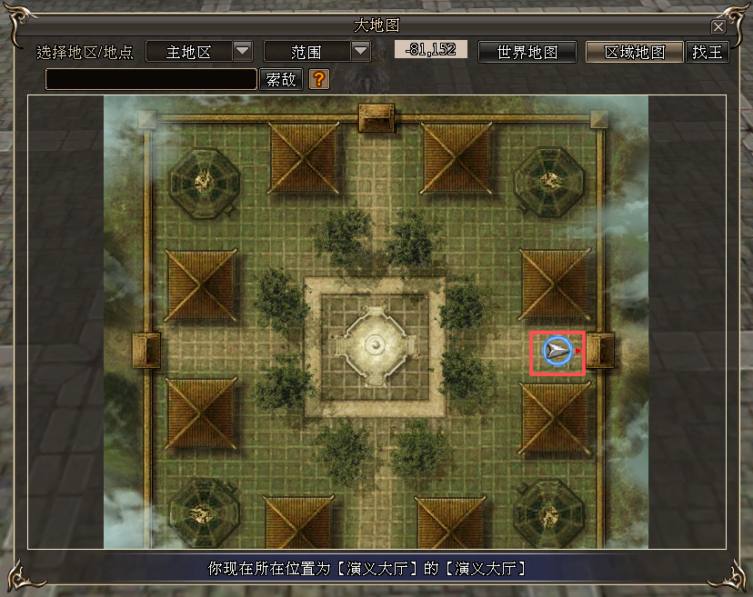 12、演义大厅中,新增NPC「竞技场督导官」,位置如下: