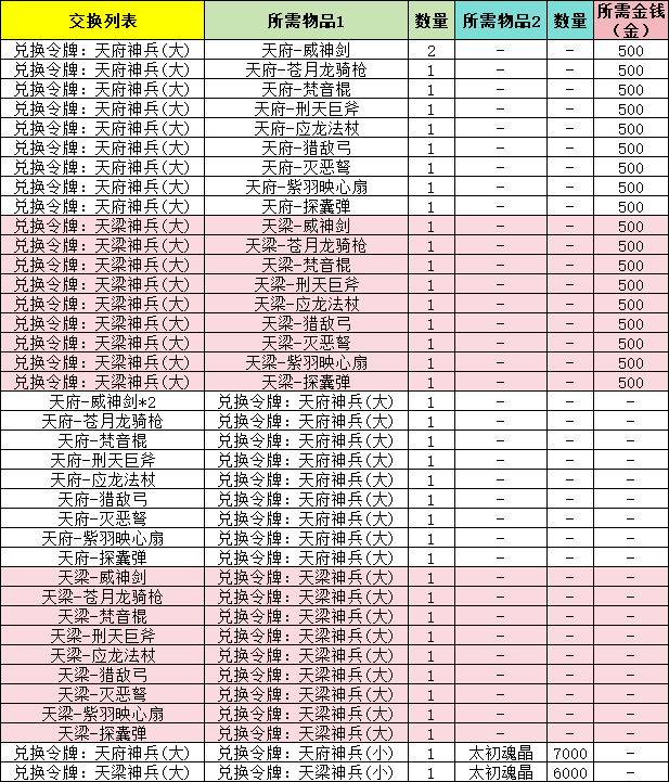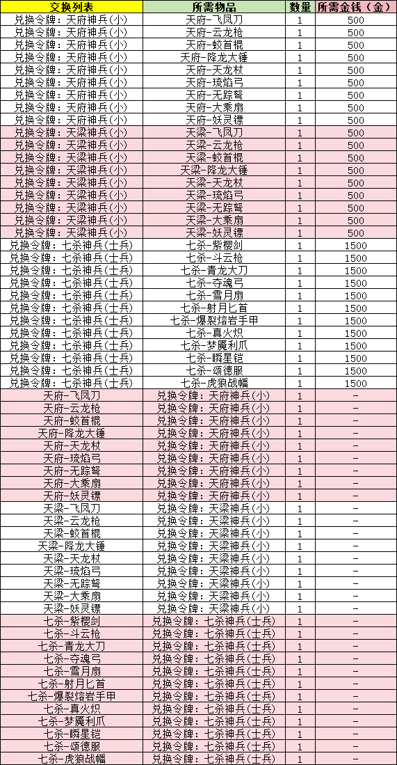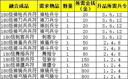 21、演义大厅中,新增「神兵征召官」,兑换列表如下: