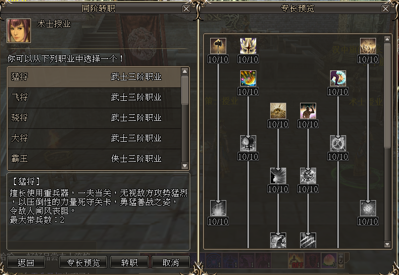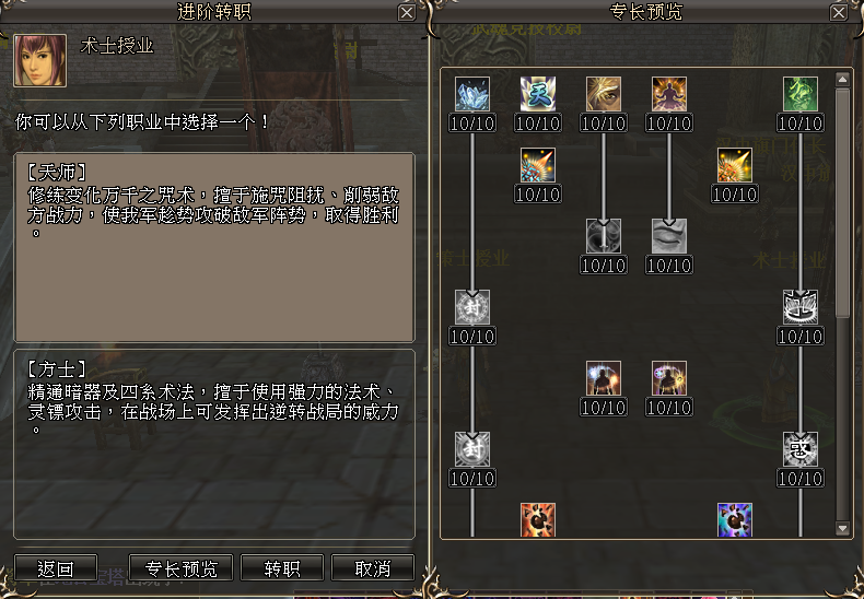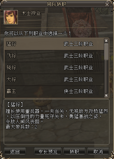14.同阶转职、进阶转职的界面中,加入专长预览功能