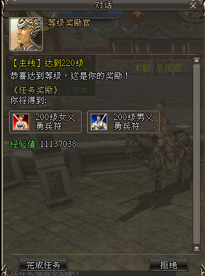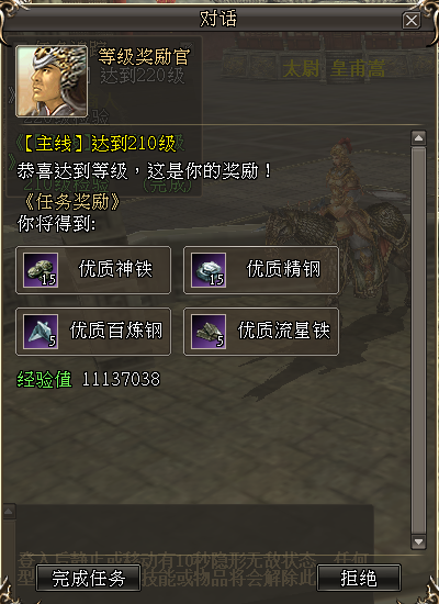 13.演义大厅中的『等级奖励官』处,新增任务《达到210级》《达到220级》