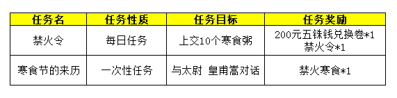 ·“禁火寒食”为节日限定称号,详情如下: