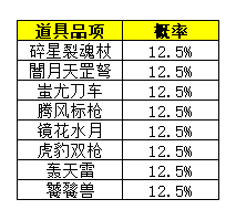 极品道具包括:英勇兵专武兵器箱、金牛惊喜礼盒、金牛扳指、四级神工凿子、英勇兵技能书福袋