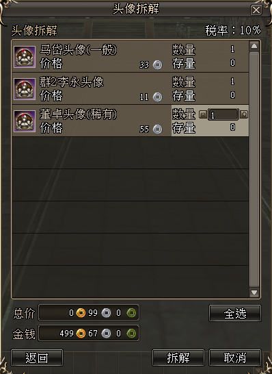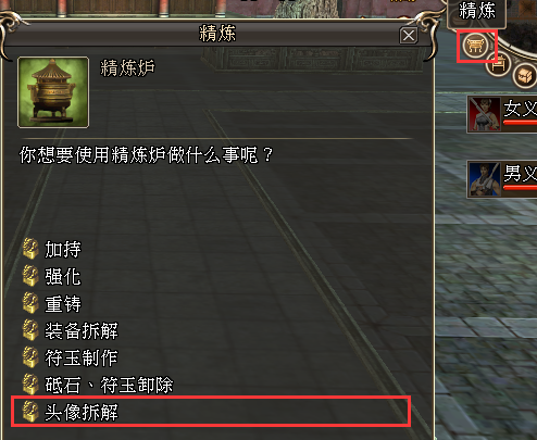 ·可通过精炼按钮中的头像拆解选项,进入拆解界面
