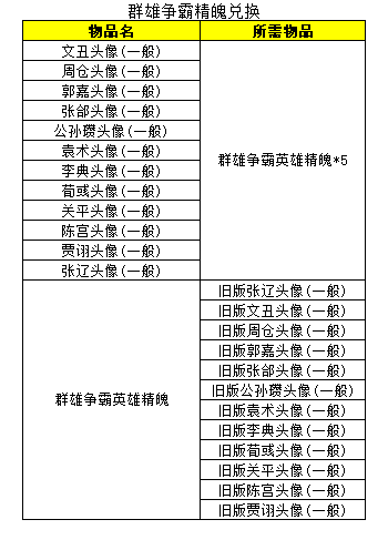 ·往期头像依然可以在演义大厅中的 傲视天下精魄兑换、群雄争霸精魄兑换NPC处,将头像兑换为相应的精魄;本期及后续产出的头像将无法兑换为精魄
