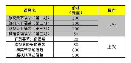 ·群英荟萃超值包、鹰视狼顾超值包,详情如下: