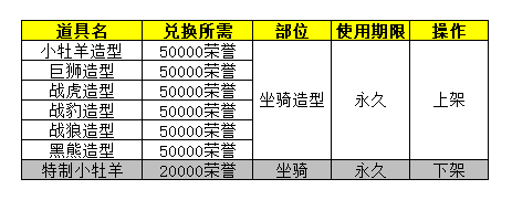 3.活动兑换官处,兑换清单调整