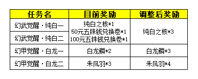 ·增加幻武、幻甲觉醒任务的材料奖励,详情如下: