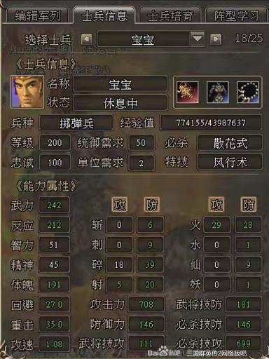 首先上一张在阵列外未出场的200级高级掷弹兵属性,带+12豪猪火器,+7武力打造衣服,+5武力兽牙,在没有阵型的加持下,拥有不错的攻击力与重击率,射程在木标与连弩之间,但不存在木标妹突脸的问题,AI稳定。