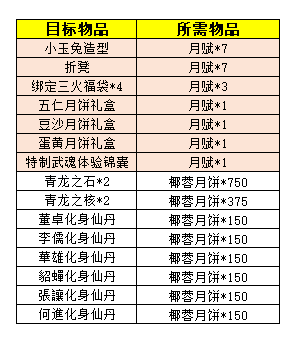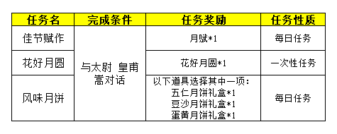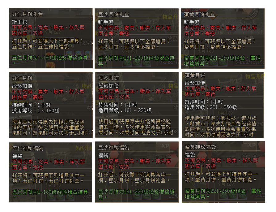 ·五仁、豆沙、蛋黄月饼的效果持续时间为1小时,冷却时间为1小时
