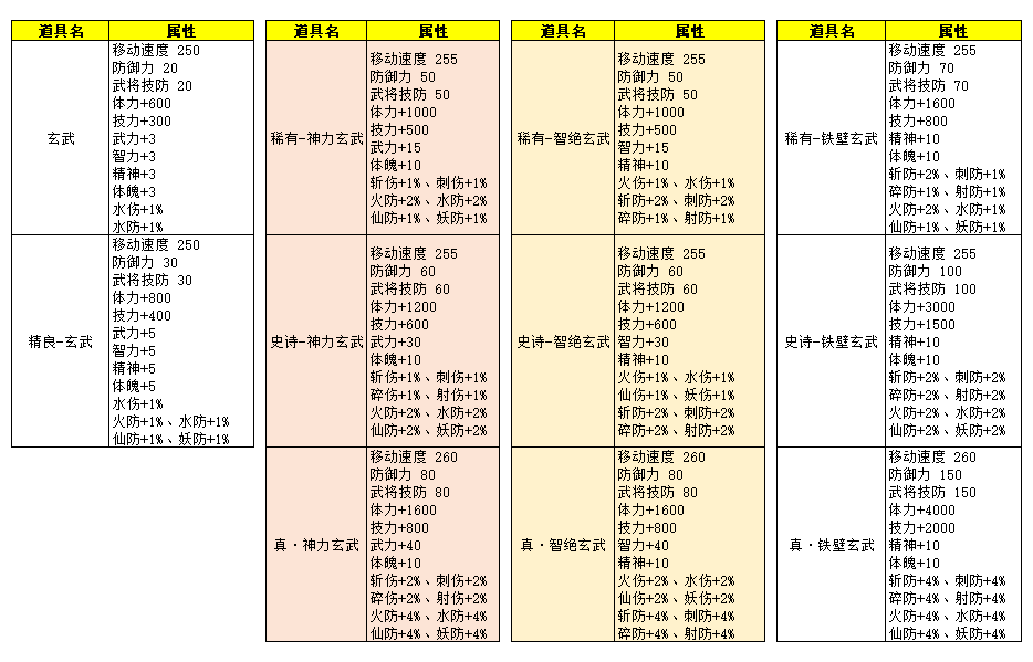 ·以上玄武均为要求等级220、强化次数4/4,装备次数1/1的 防具/马匹