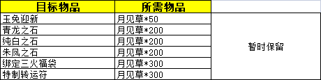 更新后的兑换列表如下